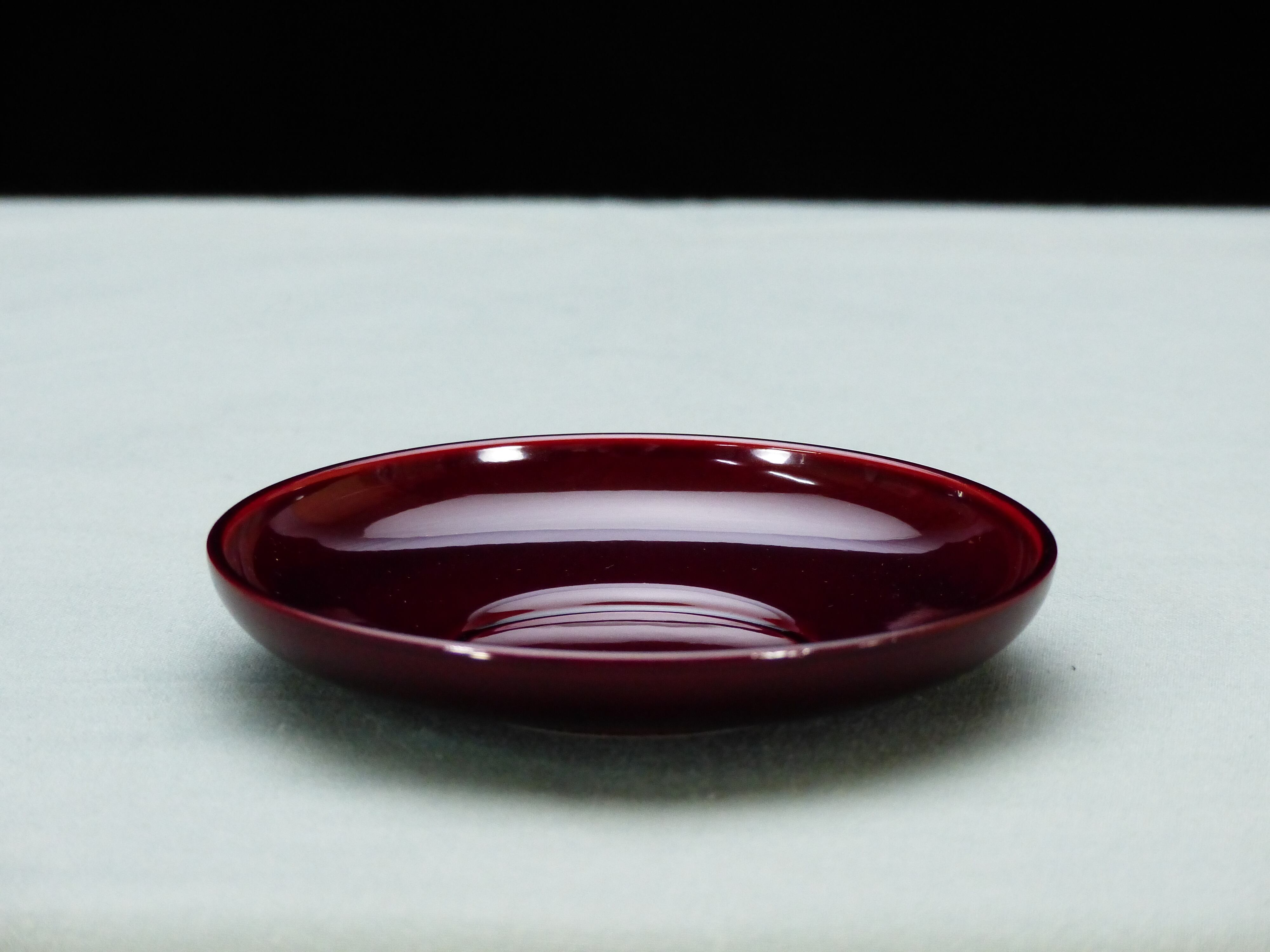 色は溜塗りで、使っているうちに赤みがでてきます。縁が高く湯呑の中身があふれても、外にこぼれることはないです。