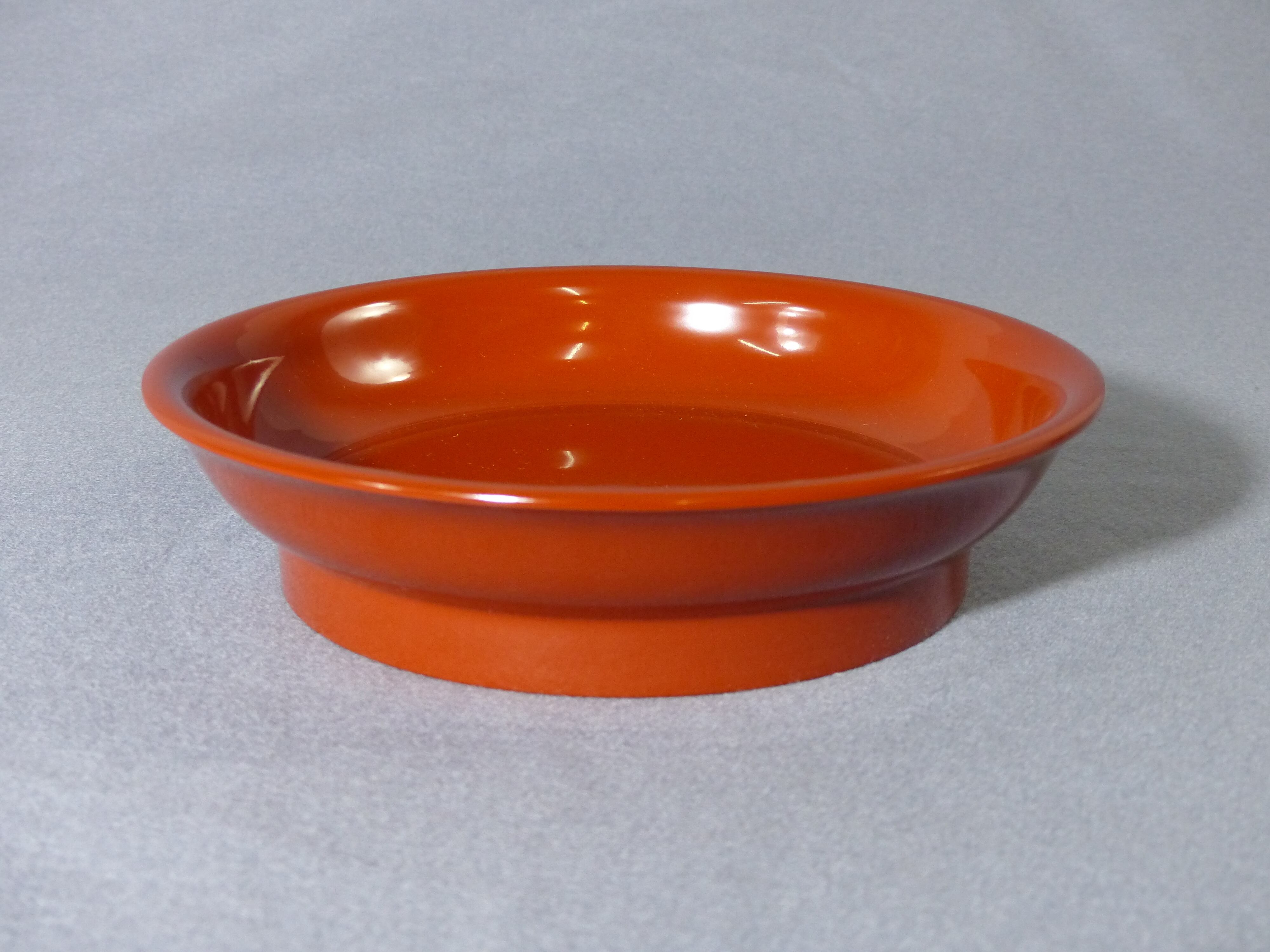 黒っぽい落ち着いた朱色をした盛鉢です。